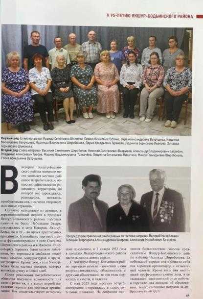 В истории Якшур-Бодьинского района значимое место занимает районное потребителькое общество, которое является ровесником территории, на которой оно зарождалось. Как свидетельствуют исторические документы, к 1 января 1933 года в пределах района насчитывалось девять сельпо. С той поры Якшур-Бодьинское райпо пережило немало изменений – оно реорганизовывалось, объединялось с другими обществами, за эти годы случались взлеты и падения. Но с мая 2023 года местная потребкооперация отправилась в самостоятельное плавание. На общем собрании пайщиков большинством голосов председателем райпо была избрана Надежда Широбокова. За небольшой период она проявила себя хорошим организатором и настоящим профессионалом своего дела. За ее плечами — внушительный опыт в торговле, два диплома и целый ряд наград за добросовестную работу. А впереди еще много планов!